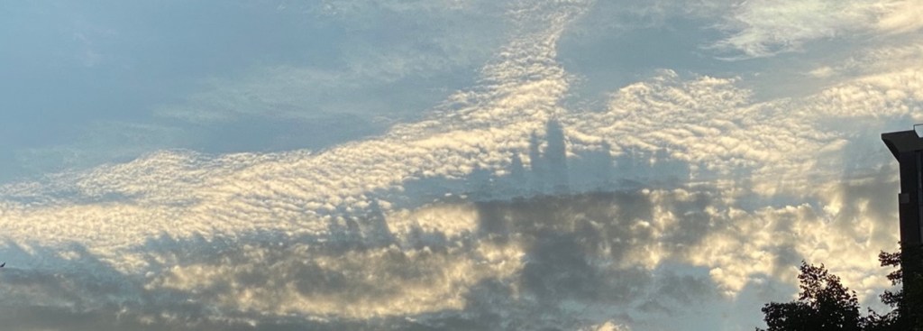 Like That I had wallpaper like that in my bedroom. I knew the world, like that mapped out into colorful countries, continents. I missed the headline like that one about the personal messages on those M107s and had to look up, like that just what they looked like1, and what a Howitzer is and sure, a cryptic poem like that is totally reasonable in its disputatious critique with shadows of pure reason waving Kantian flags from the three transcendental ideas— the thinking subject, the world as a whole, and a being of all beings— and I learn that Venmo, like that, is a verb for convenient transactions and I look up the etymology of motherfucker to check on progress2 , I mean, some meaning, like that world peace thrown in those roses. 1https://en.wikipedia.org/wiki/M107_projectile 2https://slate.com/culture/2013/02/motherfucker-etymology-and-origins-how-it-became-badass-to-be-a-mofo.html Could we ever hear the harmony? Look up at the sky, see how the wind has created a city of whorls in clouds. A marvel, like staves for music to embroider a vision of nevertheless despite disheartening news: drought, wildfires, bombastic broadcasts brought of wars, want, clashes between classes, cultures, horrors we have wrought. I look up in the sky, to witness skyscrapers made of mist wound into mirrors made of wind, dust, and work my tongue, press it on the roof of the mouth, my teeth vibrate as they strum the lower lip, never and now the tongue again against the teeth, the and a curled lick of an l, an expiration of s less Nevertheless, as plea, for there to be music of the spheres, and souls that exist to perceive it so we can carry on in kindness remembering something of whatever good.